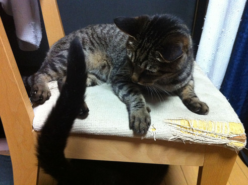 真っ黒いの(こたろう)にちょっかいを掛けられるみそちゃん。