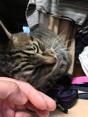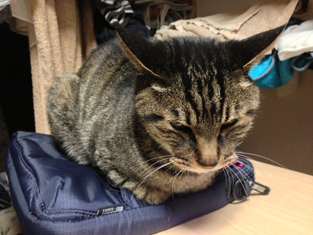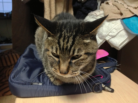 みそちゃんが大事なツマの仕事用PCバッグを占拠してしまいました。