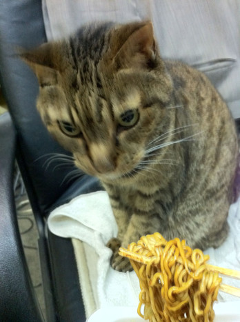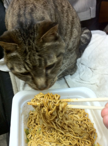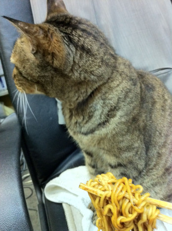 焼きそばを食べる?の写真、何か頷いてるように見えました、