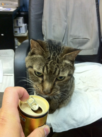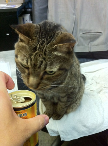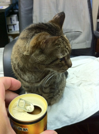 缶詰??と思ってか、猫どもが寄ってきますね!!