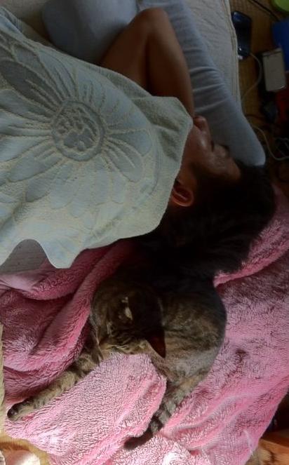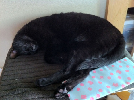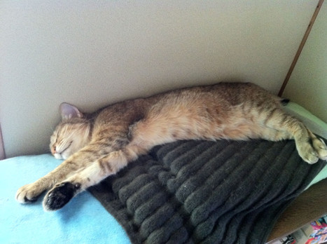 猫だけじゃなく、この暑さ人間も伸びちゃいますね・・・。