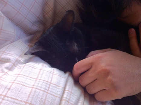 ウチのコタは自由にゃんやから、毎日 好きなトコで寝ます。おねえのベット、息子の足元、ベランダ…