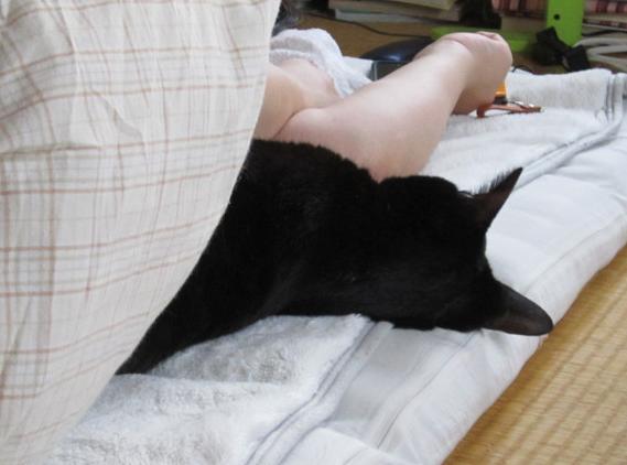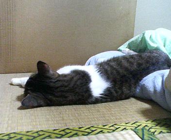 ツナもストーブの前で暑くなると、なつこちゃんみたいにはみ出てます。