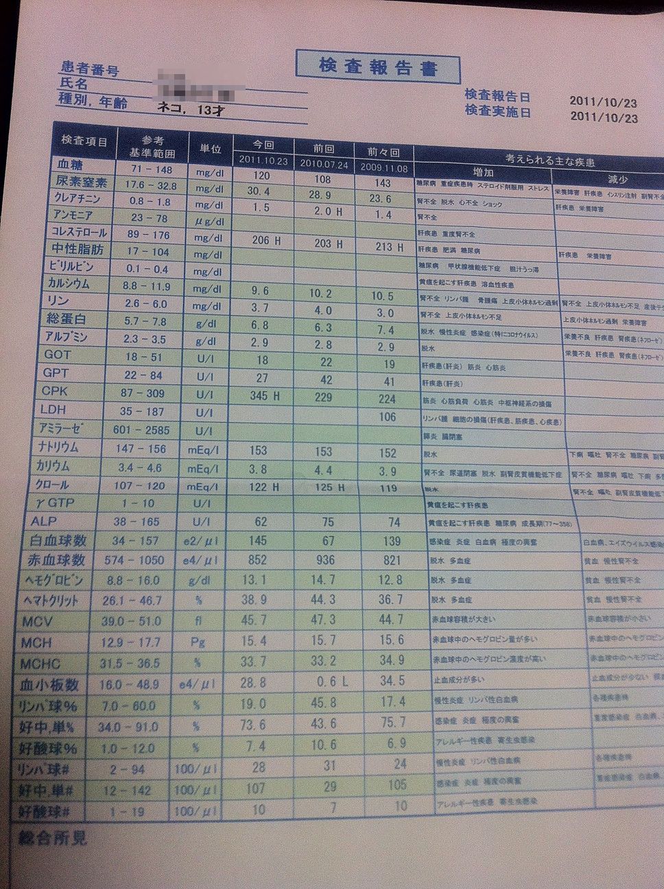 ちなみに、検査結果は以下のとおりです。
