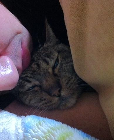 ポンちゃん、お風呂気持ちよかった??良かったね。。父サンの腕枕