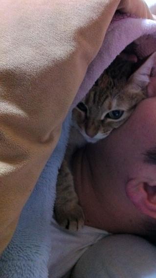 夏場とか、布団がめくれてしまうと、ぴったり添い寝してくれるのですが。