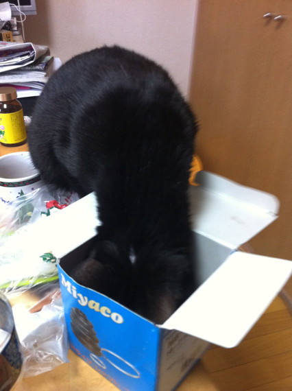 ねこはかなりの高確率でハコにもぐりこむのが大好きです。