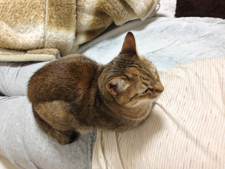 乗っかっていない時も洋間に居る事が多くなり、夜もツマやポンちゃんと一緒に